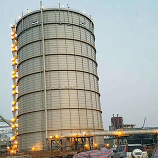 所述气柜包括:一气柜本体;一柜底油沟,所述柜底油沟位于所述气柜本体的下端;一底部加热水管,所述底部加热水管位于所述柜底油沟内;一热源,所述热源与所述底部加热水管连通;其中,所述热源输入热水使所述底部加热水管具有第一预定温度,使所述柜底油沟中稀油具有第二预定温度。